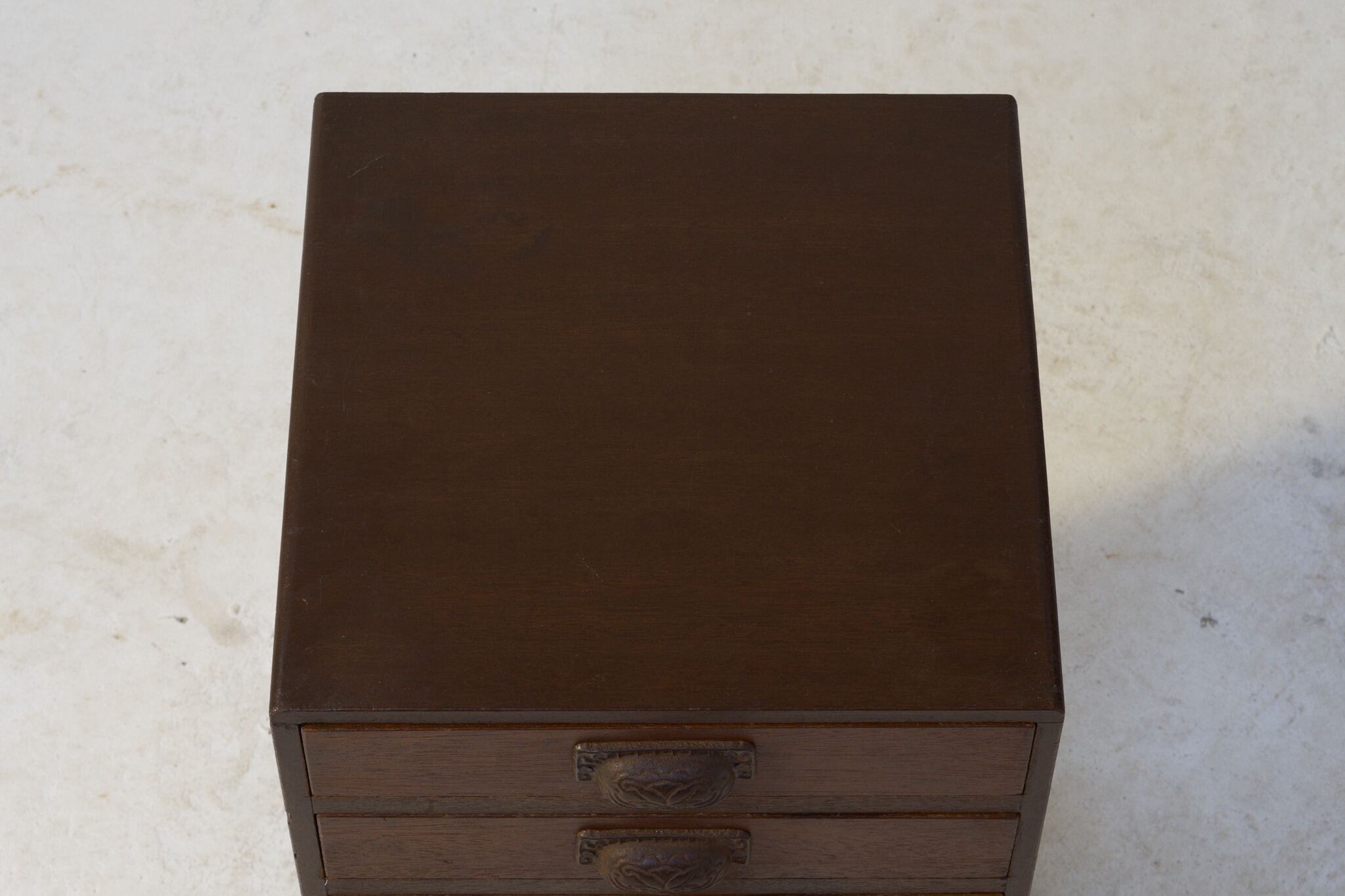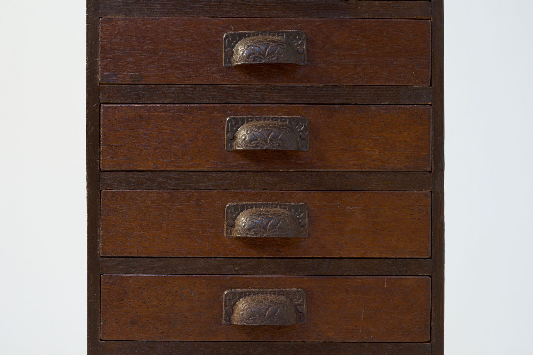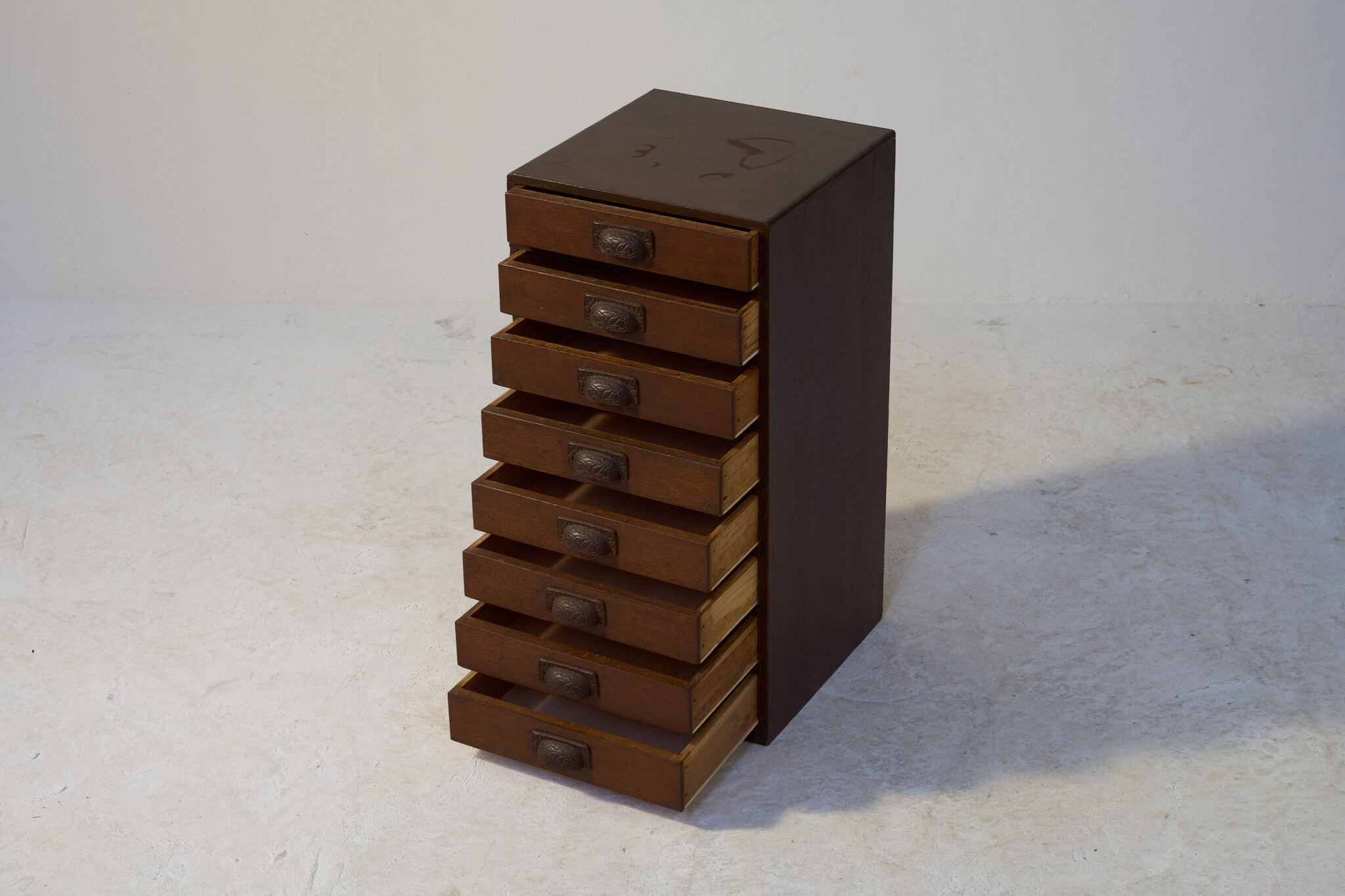 使い込まれた飴色が、静かな時代を感じさせる多段の小抽斗(こひきだし)です。