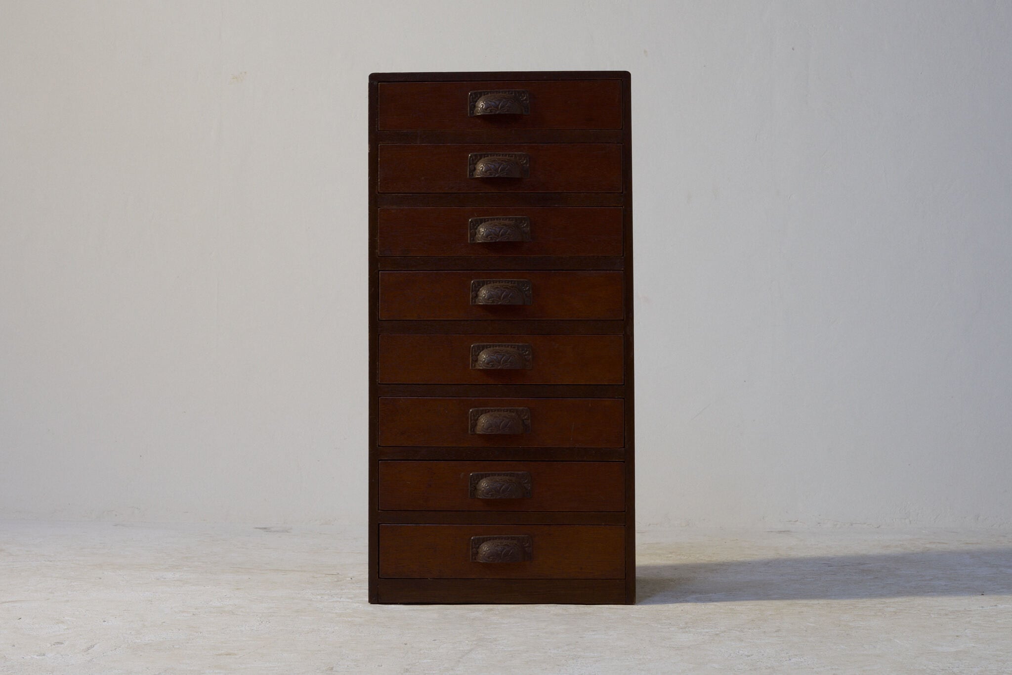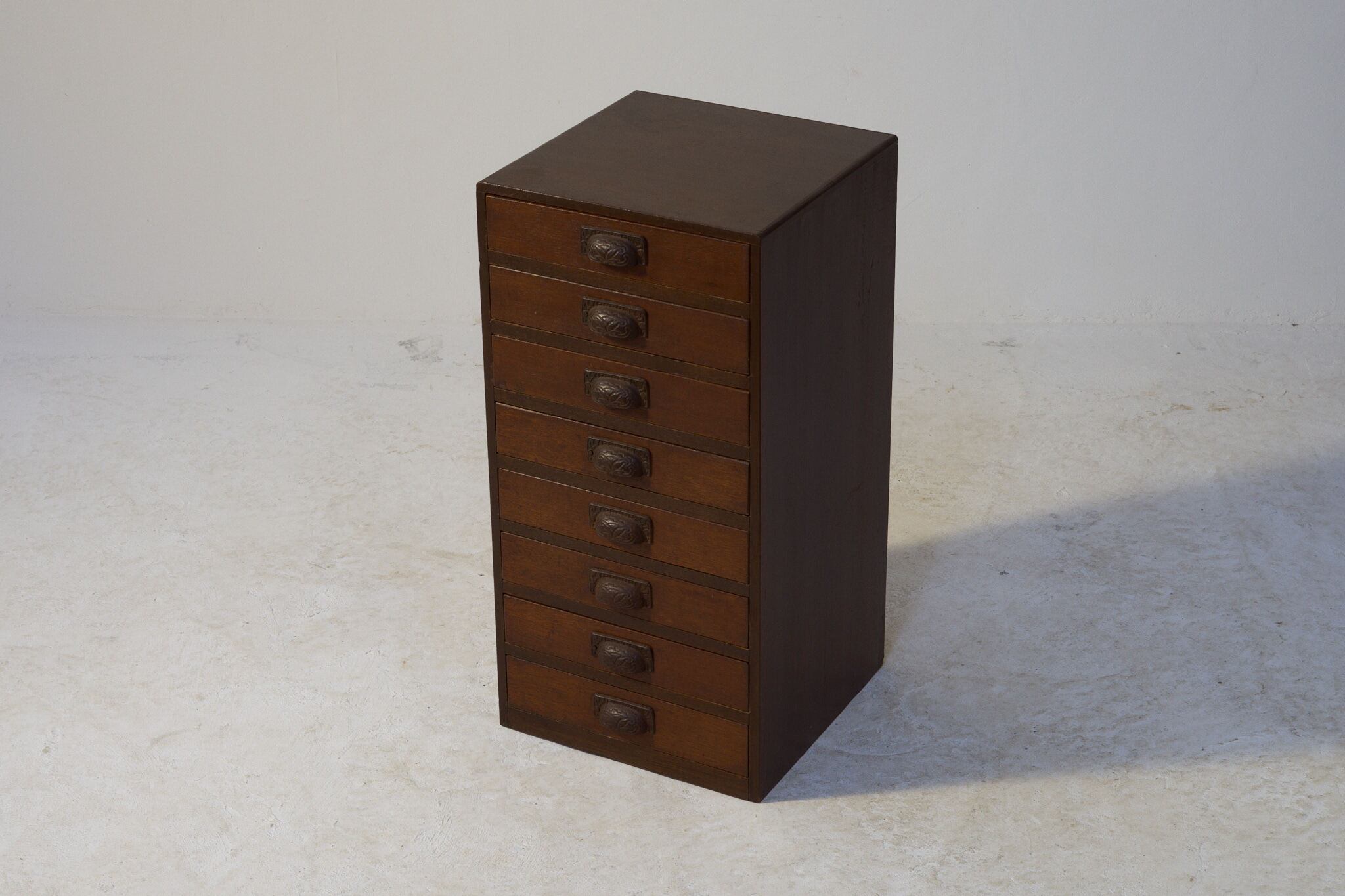 目を引くのは、どこか愛らしい表情をした取手と、すらりと並んだ8杯の引き出し。