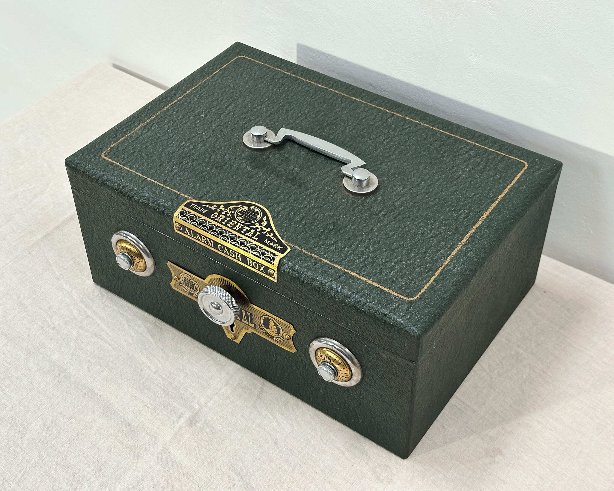金属製のキャッシュボックス「ORIENTAL ALARM CASH BOX」。