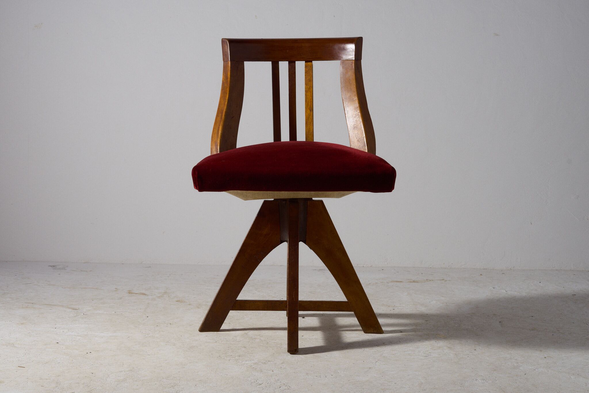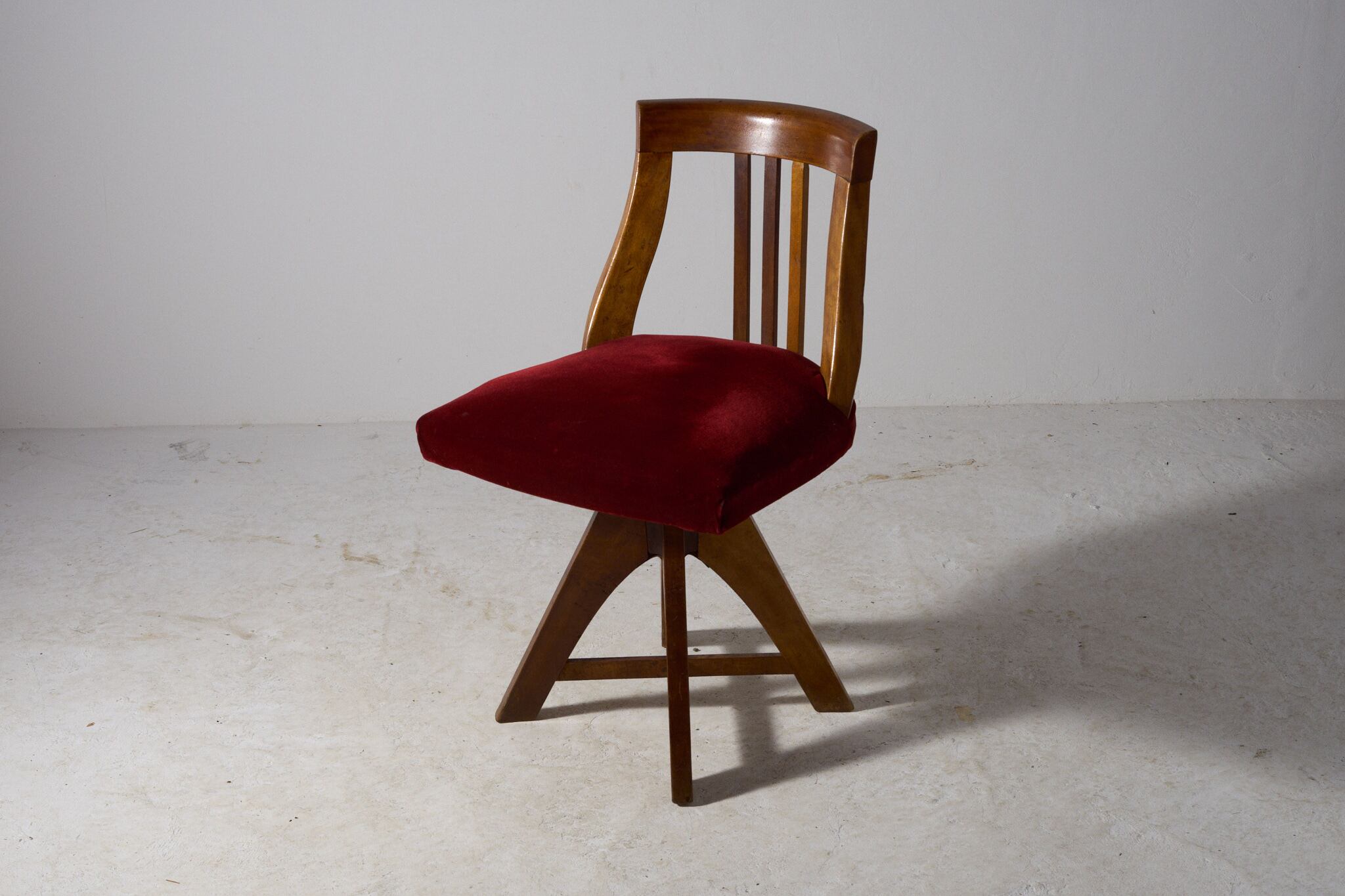 深紅のベルベットが映える回転椅子