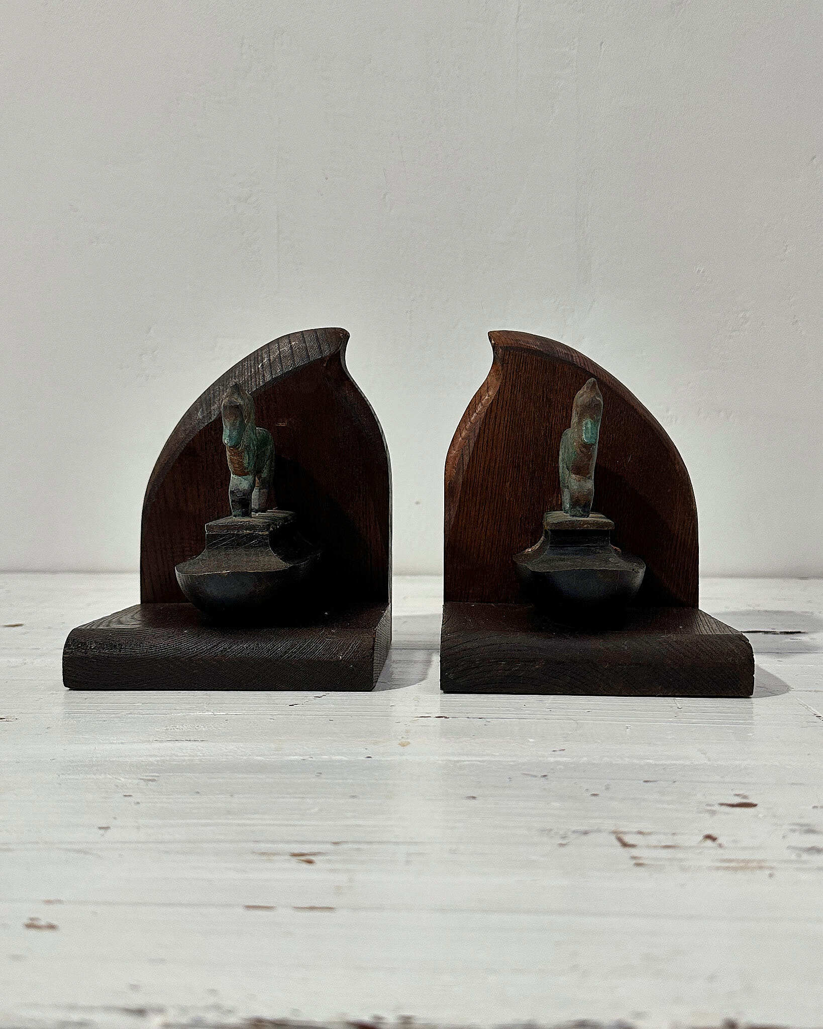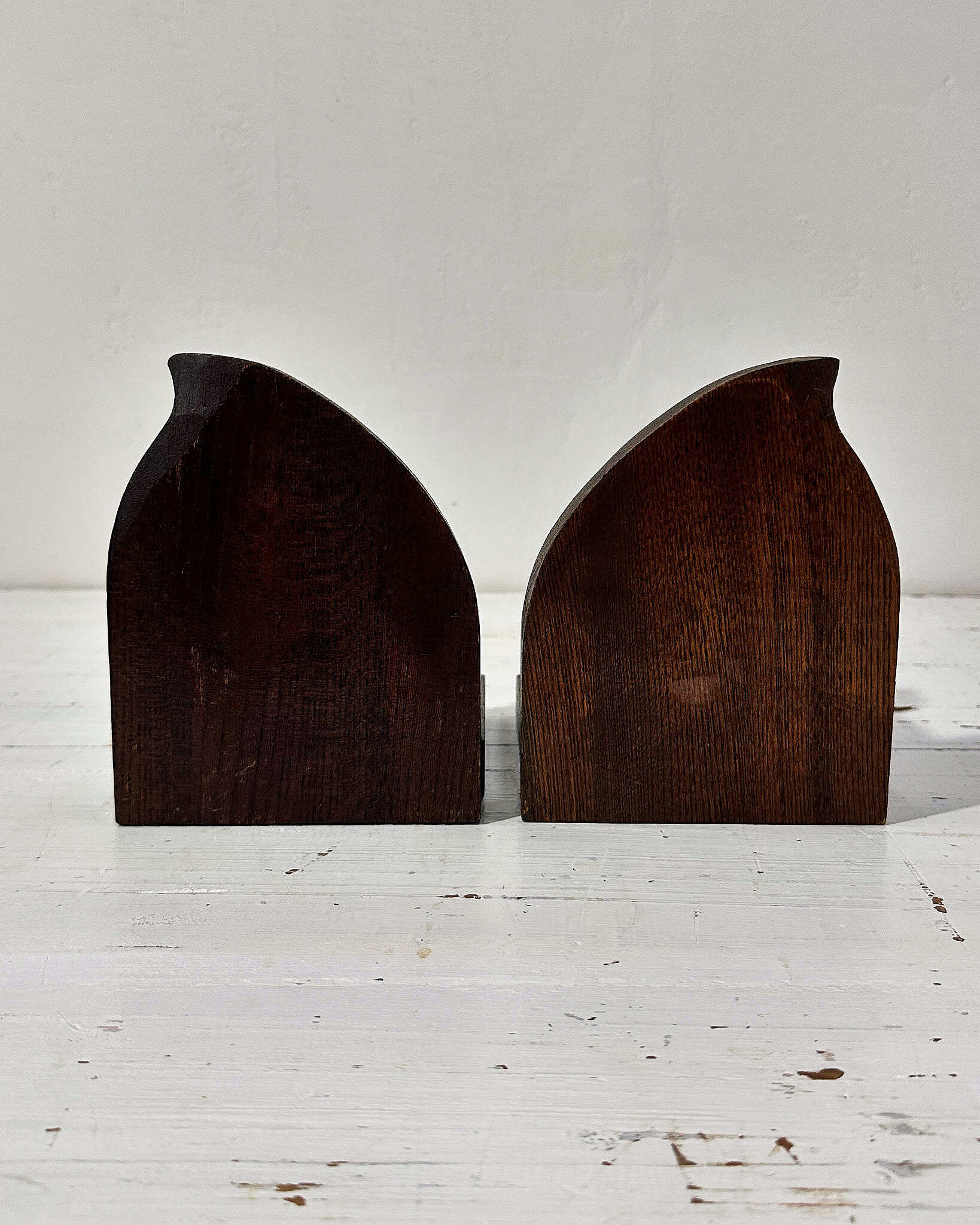 丸みのある背板の曲線が本をやさしく受け止め、古色の表情が棚まわりに落ち着きを添えます。左右で微妙に表情が異なるのも魅力です。