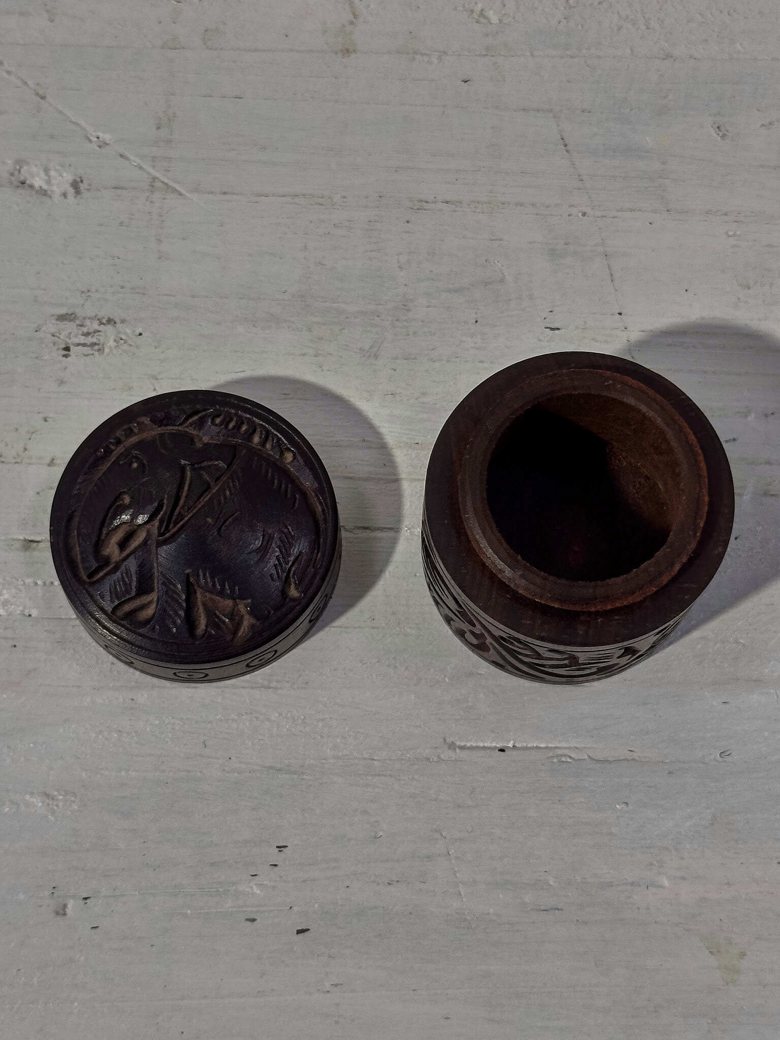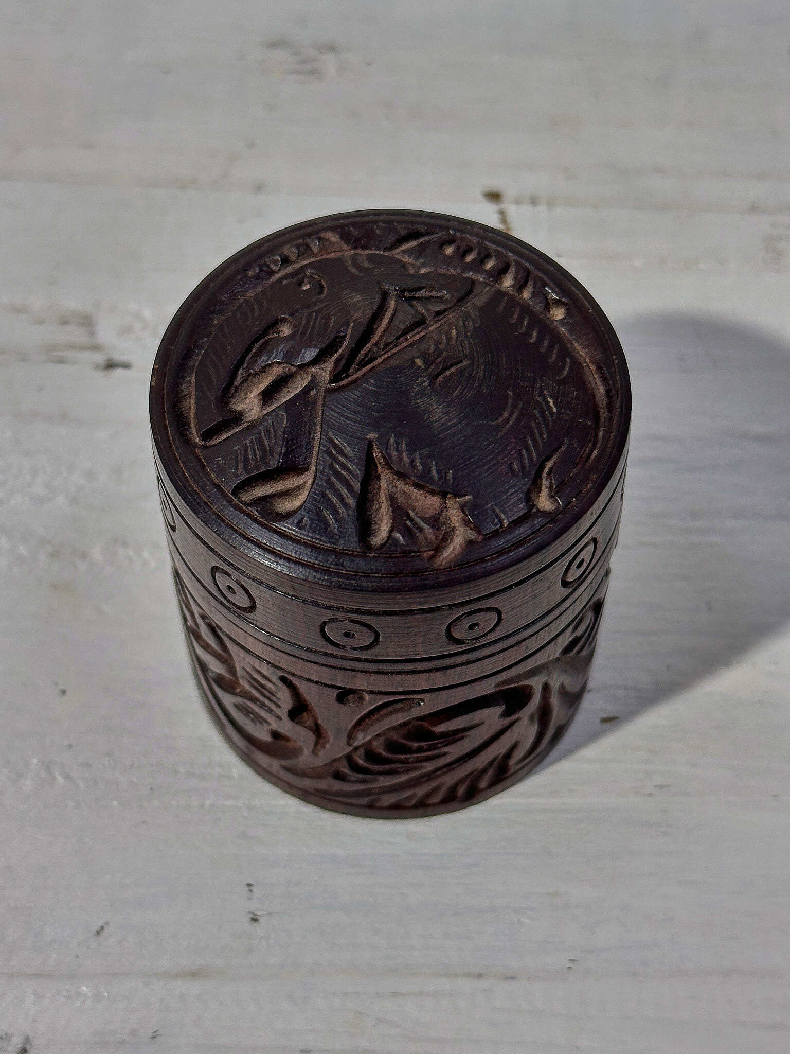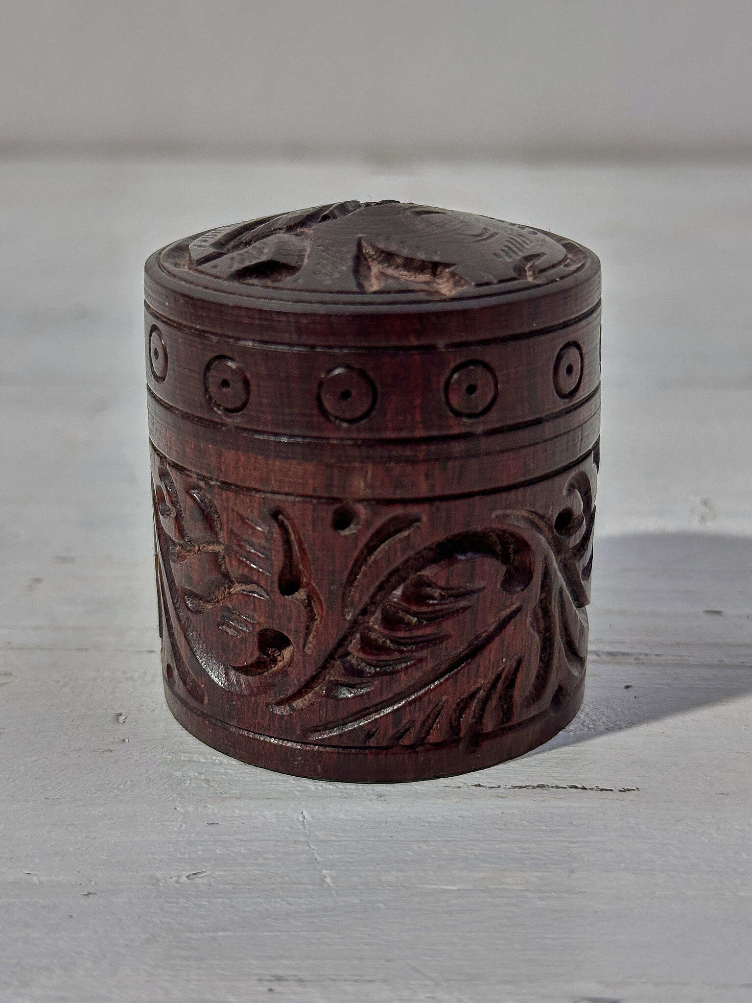 手のひらサイズで、お香や小物の定位置づくりに。蓋はねじ式でしっかり収まります。