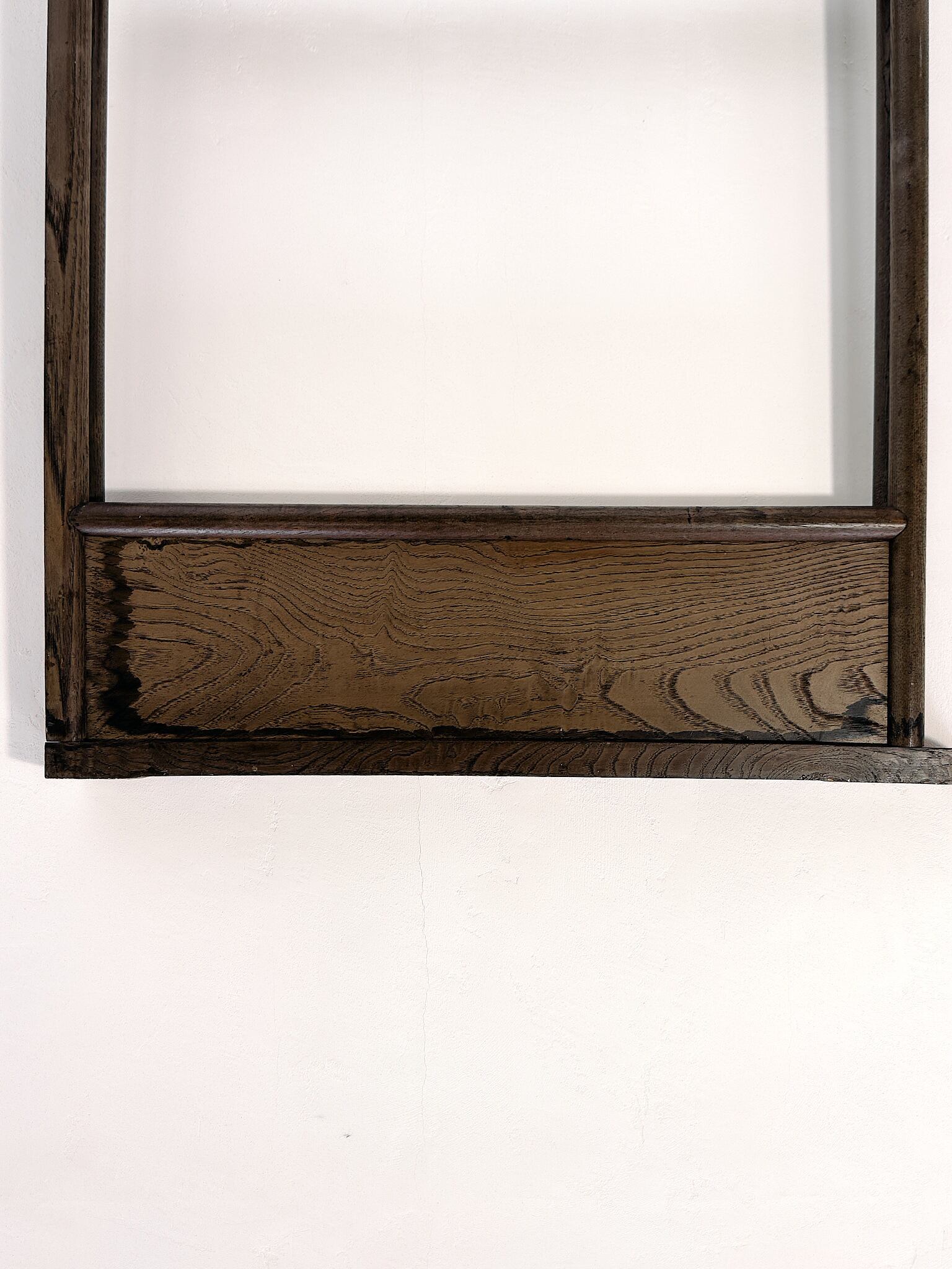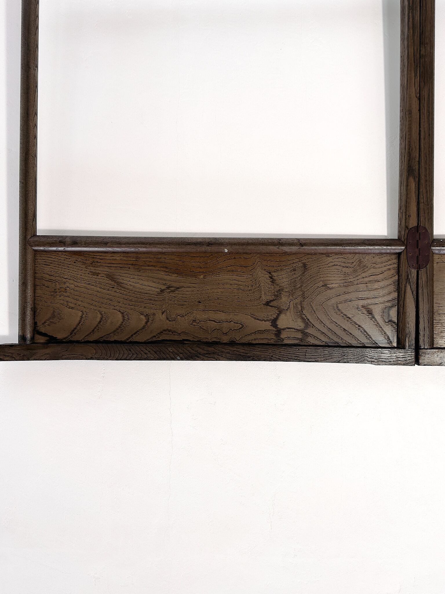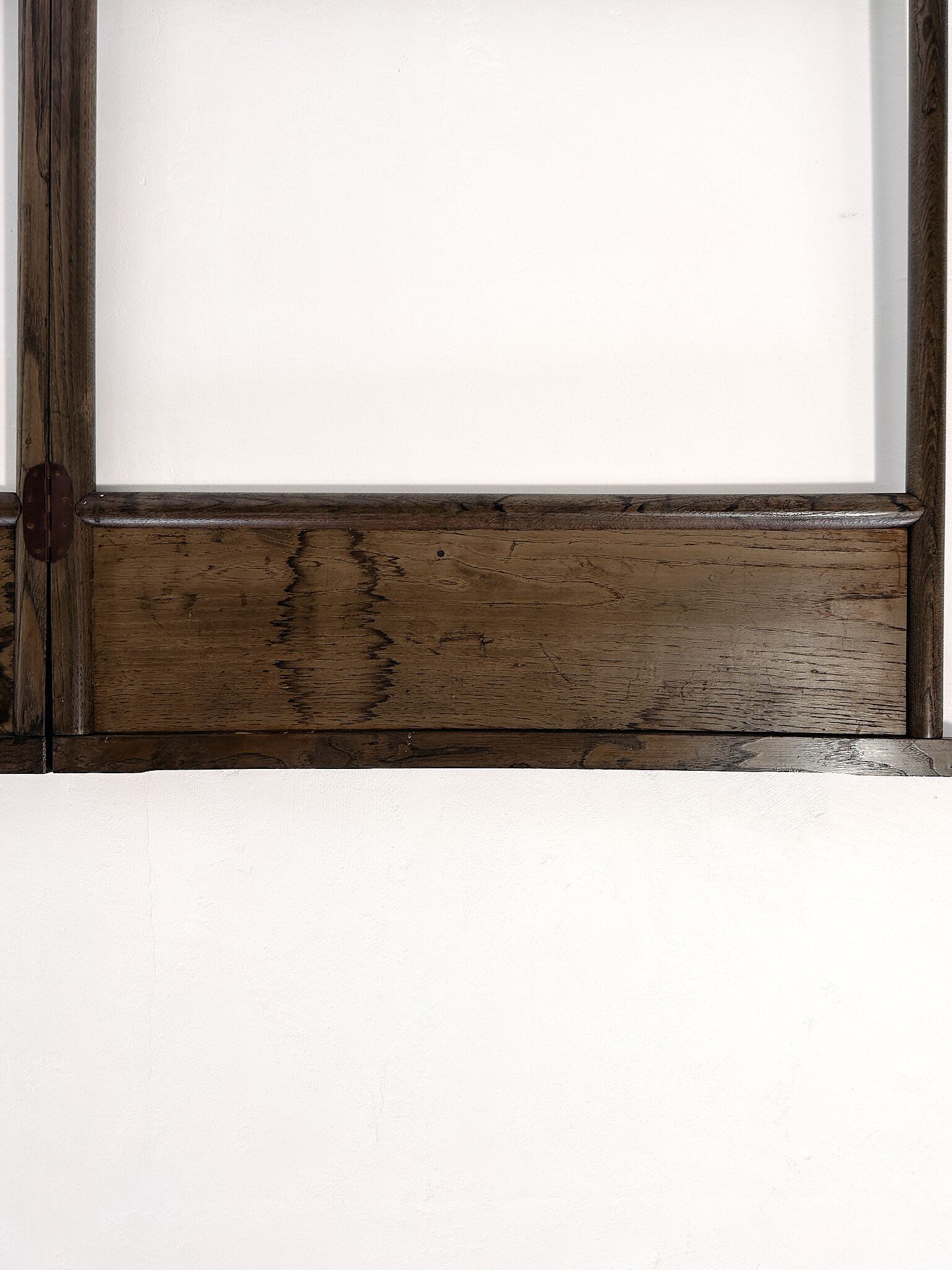 木部: 擦れ・小傷・色ムラ・小さな欠けあり(経年相応)。腰板にうっすら水染みあり。補修は濃色での塗りつぶしが前提となるため、木肌の美しさを優先して現状を生かしています。構造は良好。