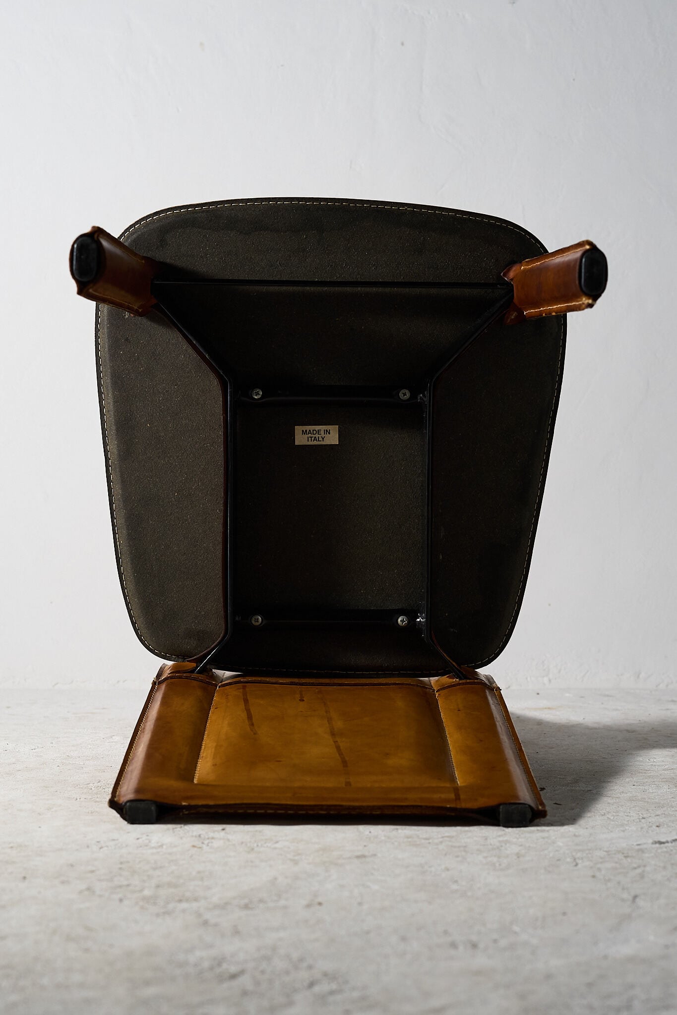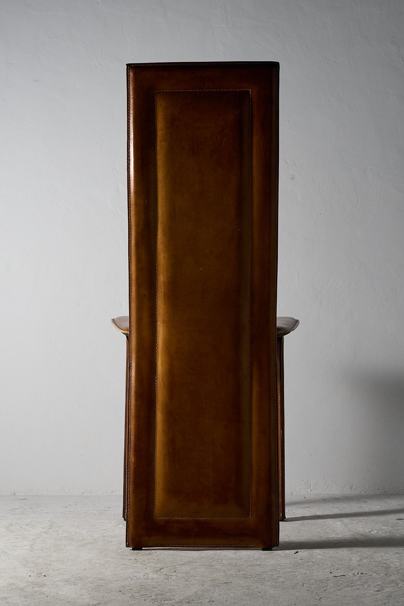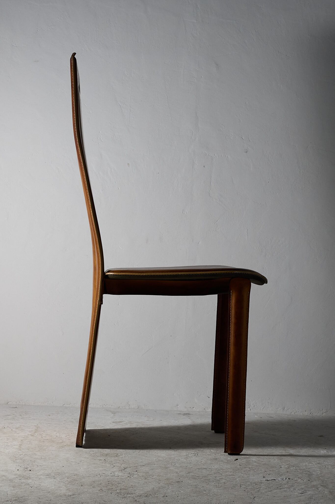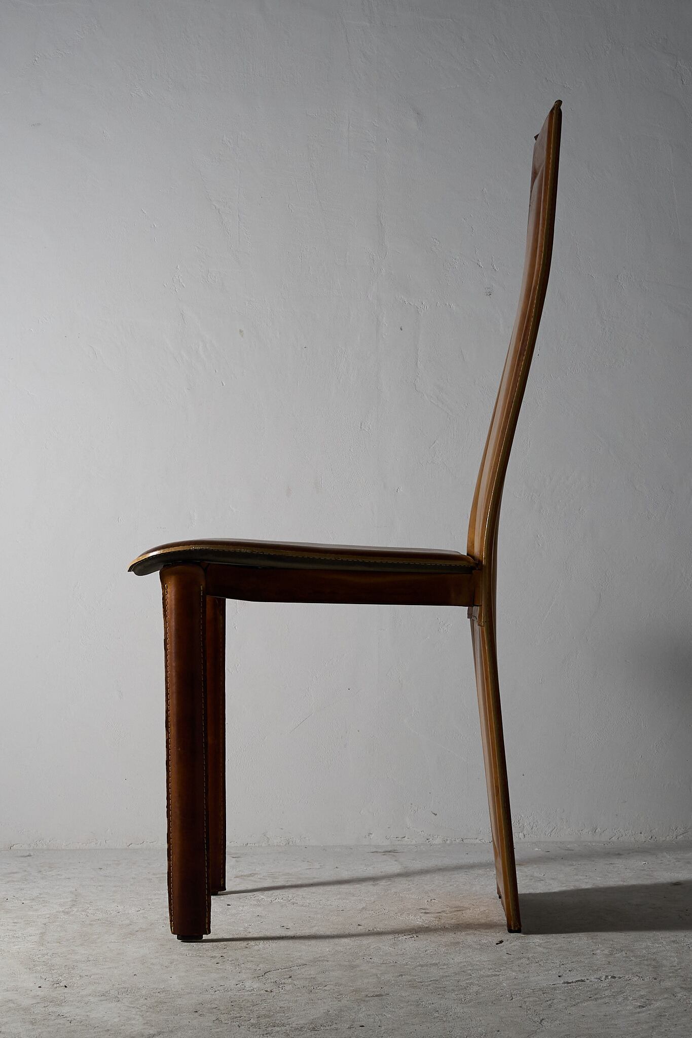 背から座へなだらかに続く一体感のあるフォルムと、深く育った革の艶が美しい一脚です。