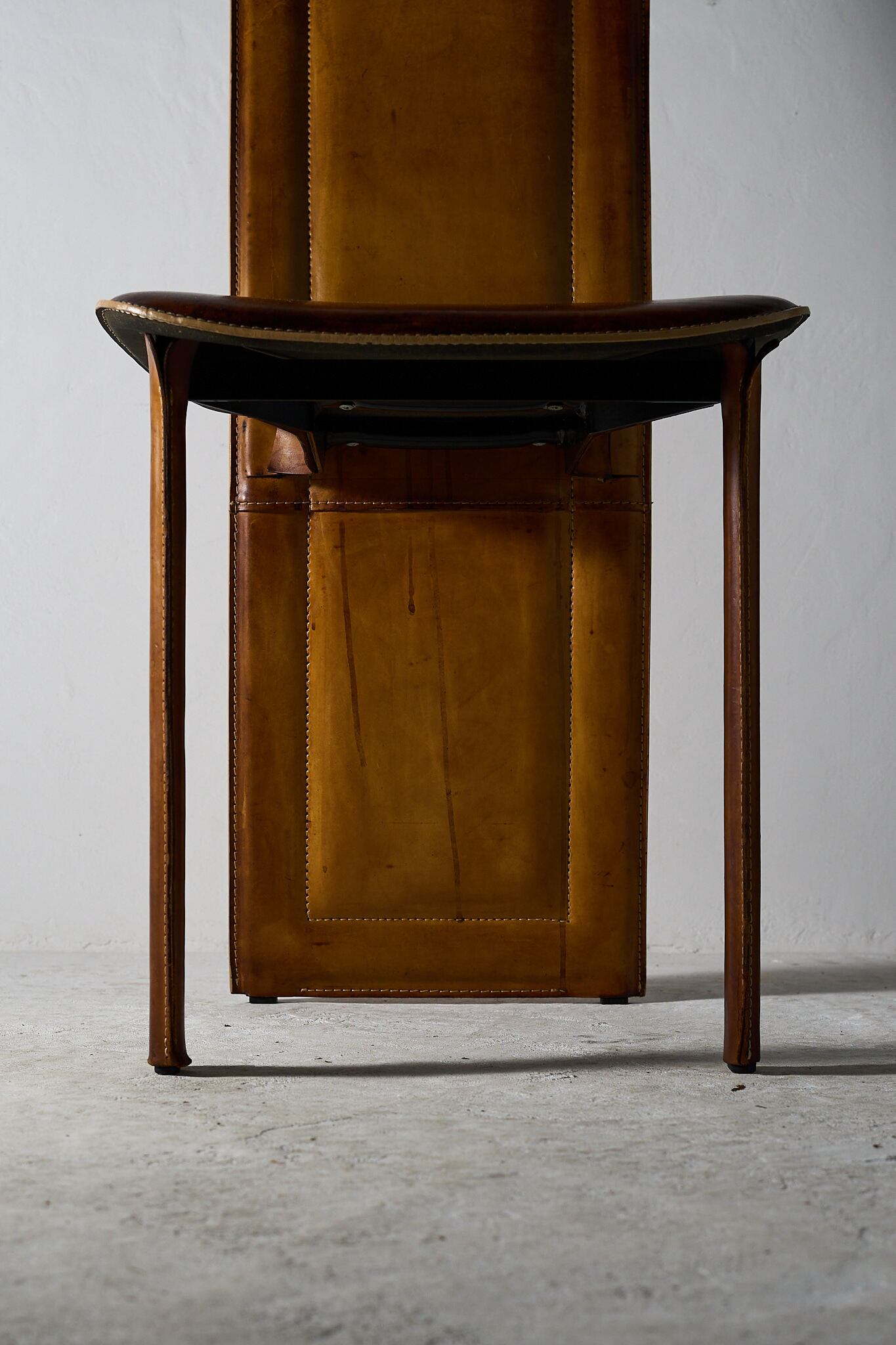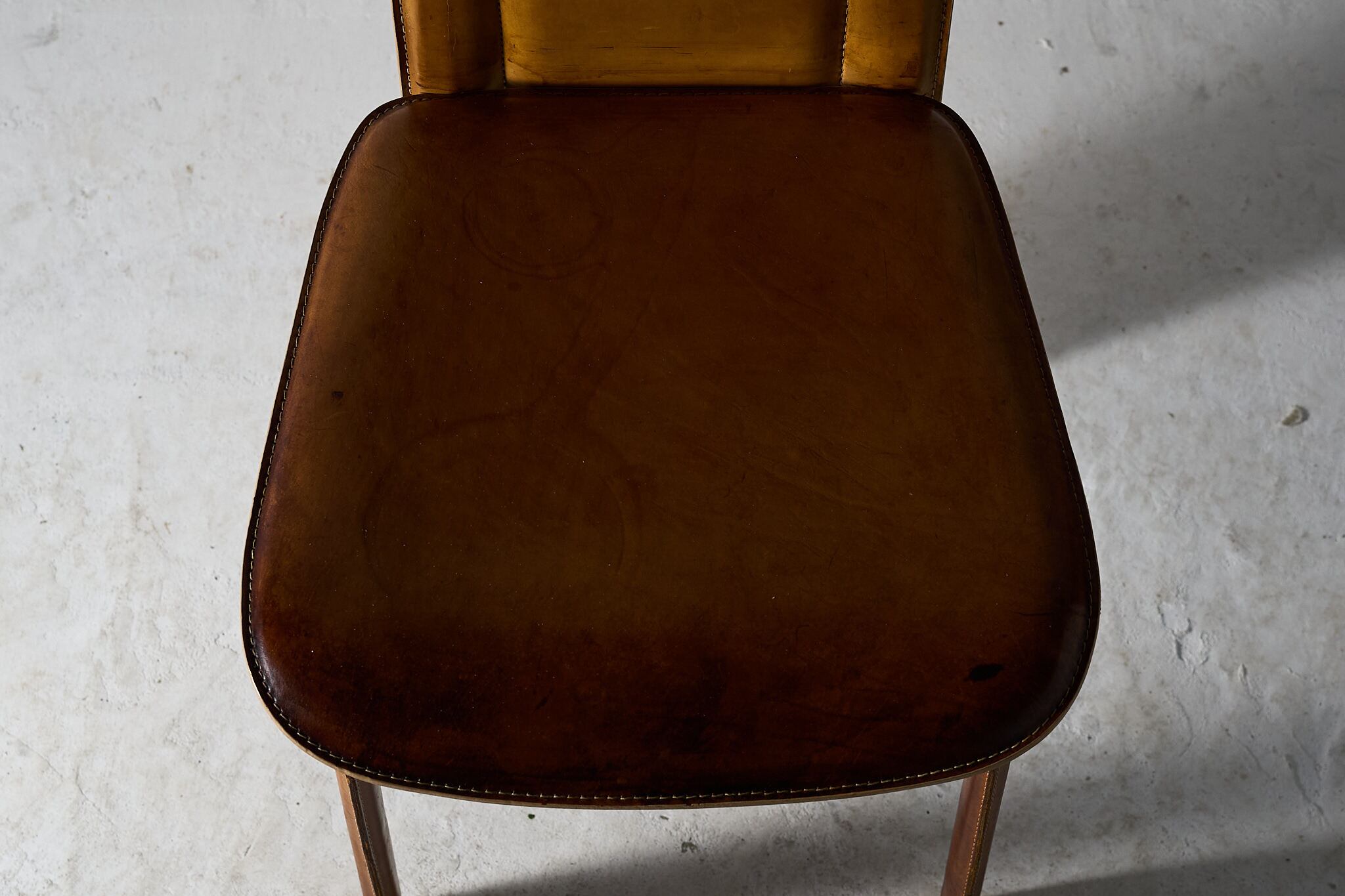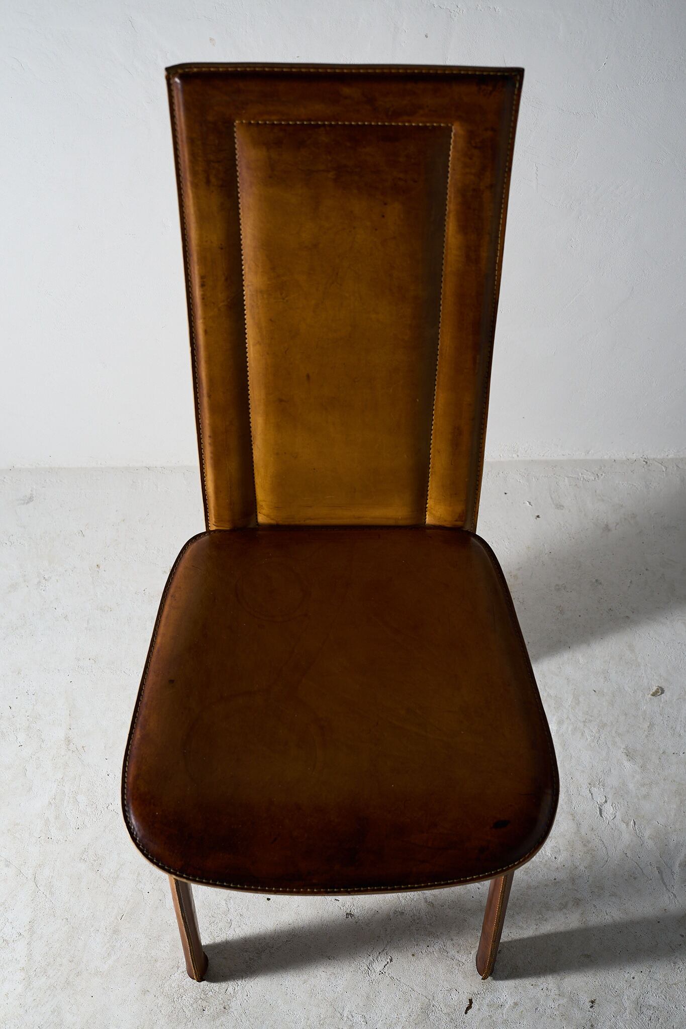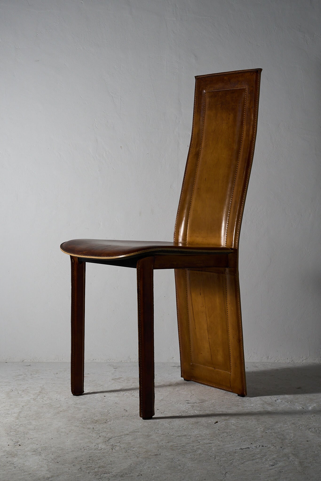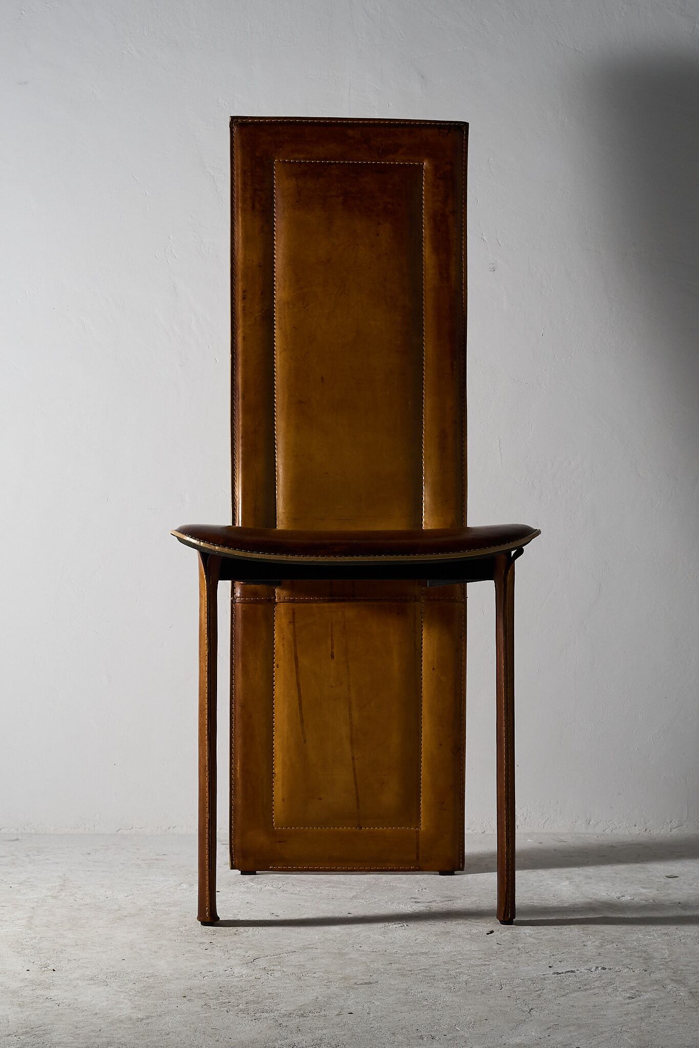 背から座へなだらかに続く一体感のあるフォルムと、深く育った革の艶が美しい一脚です。