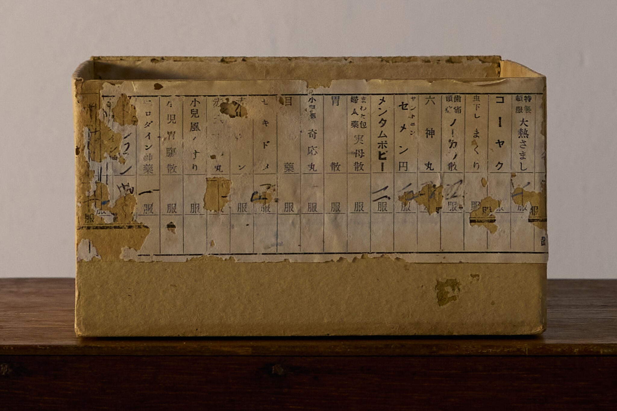 薬箱ラベルの赤い紙製小引き出し
