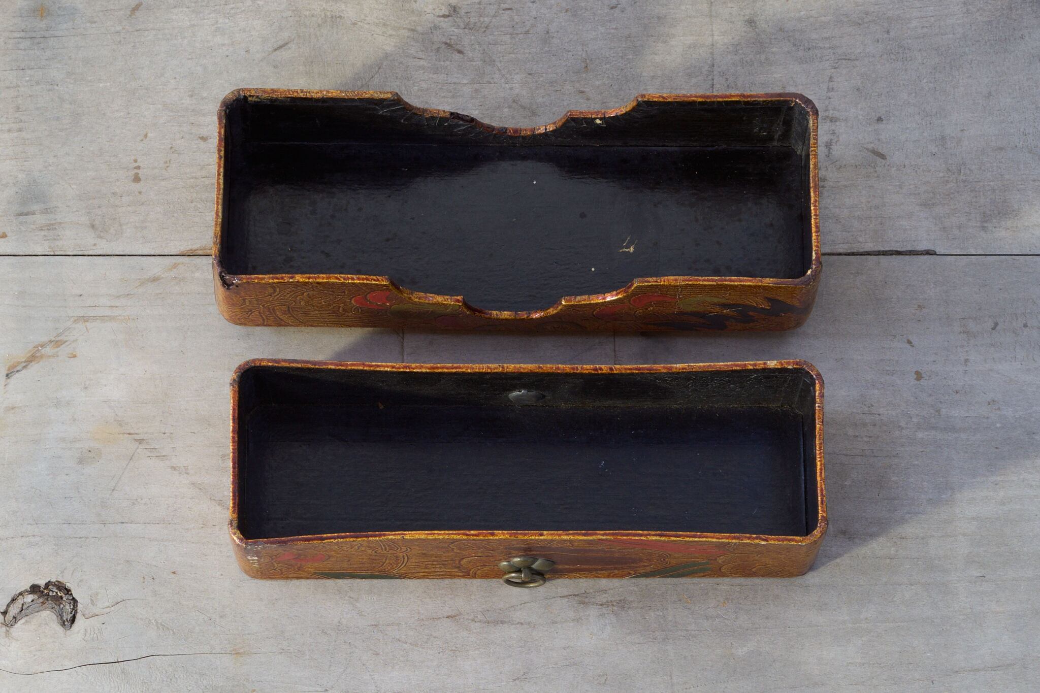 【状態】全体に経年による擦れや小傷、角の小さな塗りの剥がれがあります。少し歪みはありますが、使用に支障はありません。古いものならではの、深みのある風合いに育っています。